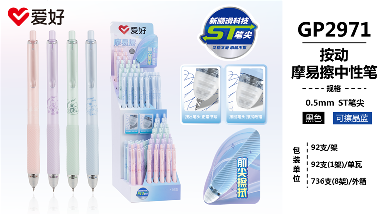 GP2971  按动摩易擦中性笔架装